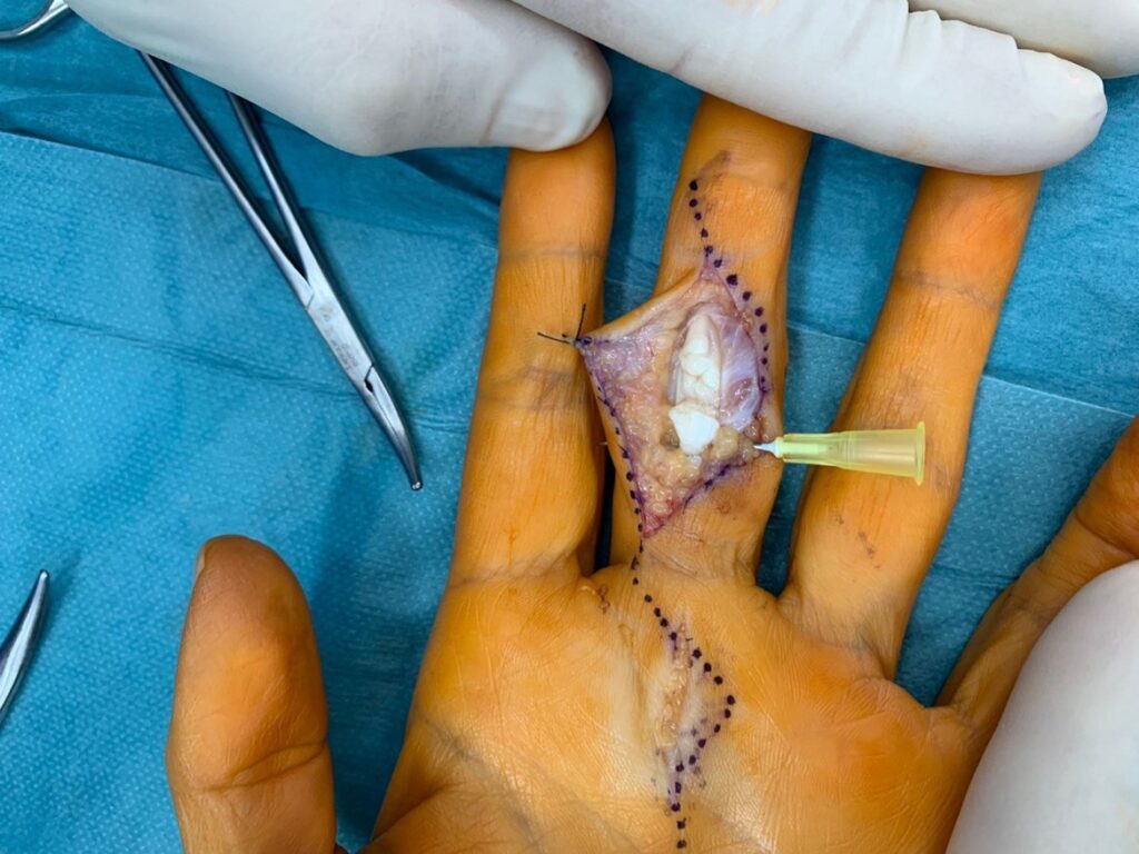 Na maioria dos casos de lesão dos tendões flexores, a cirurgia é necessária para reconectar as extremidades do tendão rompido. Esse procedimento, conhecido como tenorrafia, deve ser realizado o mais rapidamente possível para garantir uma recuperação mais eficaz e para prevenir complicações, como aderências ou rigidez articular.